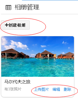 1、点击“微相册管理”,打开微相册管理页面,点击“创建相册”,可以添加一个新的相册。