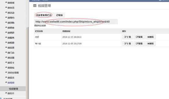 先新增视频栏目,再从子集中添加已在服务器的视频。