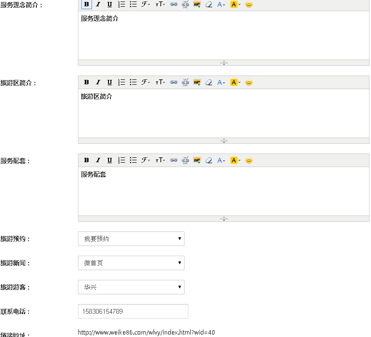 2.填写服务理念,旅游区简介,服务配套,设置旅游预约,新闻,会员等信息;