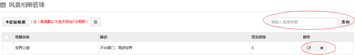 2、在添加风景相册中,可以修改,删除或者查询相册。