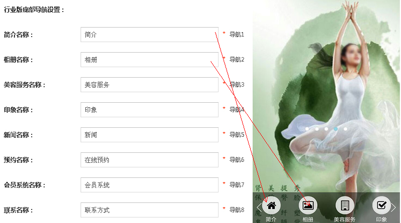 2.填写服务理念,美容机构的简介,介绍服务配套,设置美容预约,新闻,会员等信息;