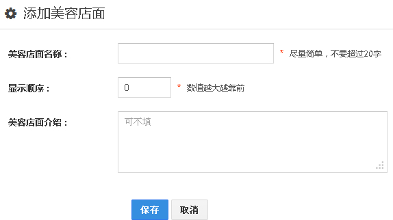 点击“添加美容店面”按钮,在美容店面页面中设置店面信息。