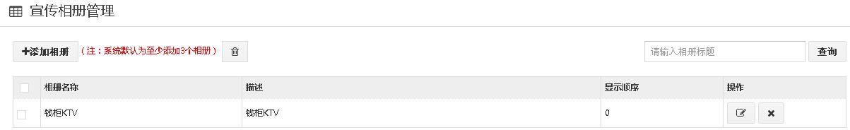 2、在添加宣传相册中,可以修改,删除或者查询相册。