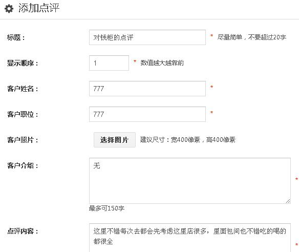 1、点击“客户点评”——“添加点评”按钮,编辑标题,显示顺序,专家姓名,点评信息等内容。