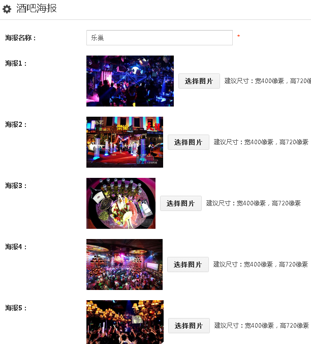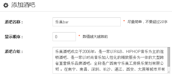 点击“酒吧”——“添加酒吧”按钮,在添加酒吧页面中设置酒吧信息。