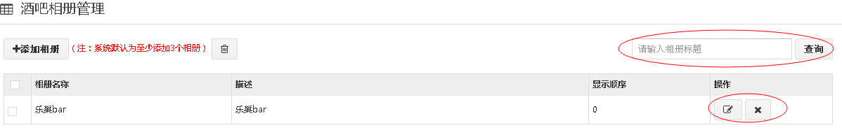 2、在添加酒吧相册中,可以修改,删除或者查询相册。