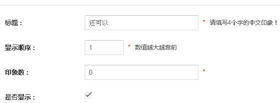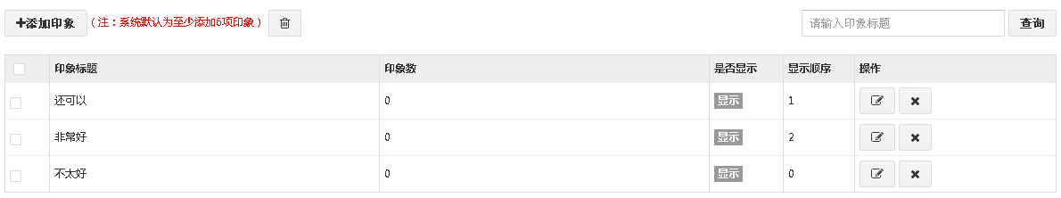 1、进入会员印象管理界面,点击“添加印象”,编辑标题,显示顺序,印象数,是否显示等信息。