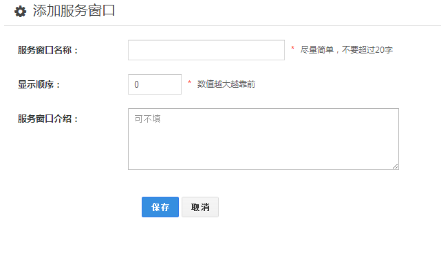 点击“门店”——“添加服务窗口”按钮,在添加服务窗口页面中设置服务信息。