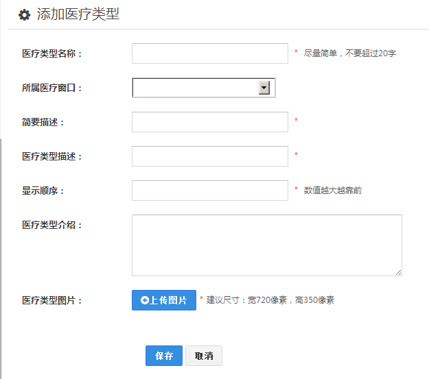 点击“医疗类型”——“添加医疗类型”按钮,在添加服务窗口页面中设置相关信息。