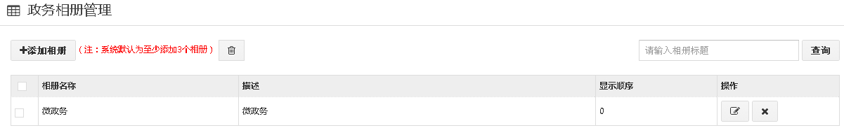 2、在添加政务相册中,可以修改,删除或者查询相册。
