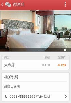 使用微酒店可进行酒店管理功能,设置酒店信息、房间信息,并支持在线预约房间,创造销售机会,也方便商户管理。