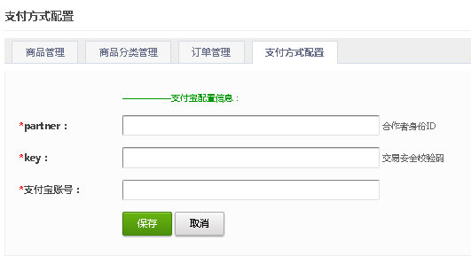 配置支付宝可以使用户获得更好的购物体验,从而方便商户对资金的管理。按表单项配置,并保存。