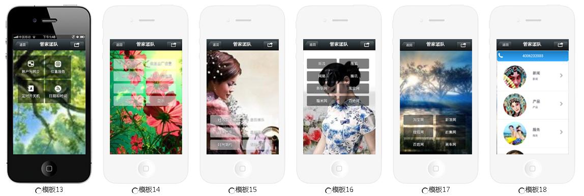 微官网目前支持首页模板、列表页模板、详情页模板。多达几十种模板可以随意任意组合,快速打造超强超炫的微官网。直接选择喜欢的模板风格,确定选择即可,同时支持顶部导航,组合样式丰富多彩。