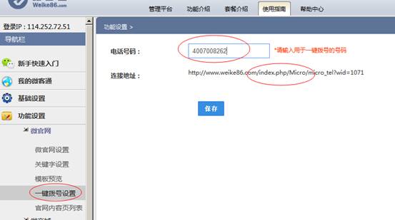 输入客户可以拨打的电话号码,保存后,即可复制该链接放入导航内。